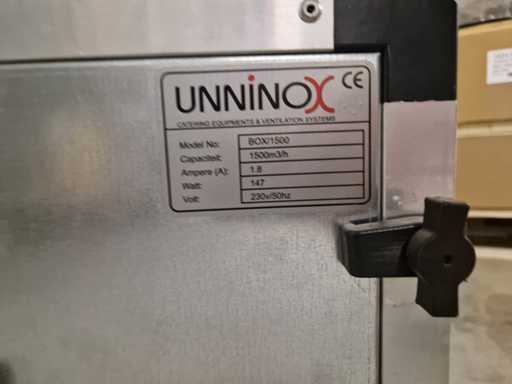 Dunstabzugshaube, Induktionshaube, Box Modell Edelstahl 280 cm Robuste, geschweißte Dunstabzugshaube aus Edelstahl in Box-Modell-Ausführung, geeignet als Induktionshaube für Profiküchen. Ausgestattet mit 5 Filtern und Innenbeleuchtung für optimale Sicht beim Kochen. Inklusive neuem Motor. Maße: 280 x 110 x 70 cm (BxTxH) Anschluss Abluftkanal: Ø 40 cm Anschluss Zuluftkanal: Ø 20 cm