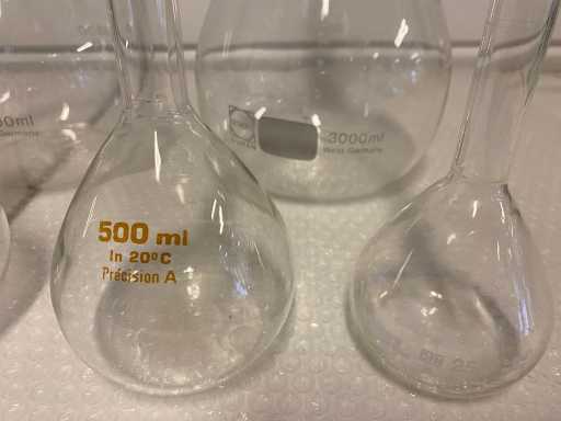 Set aus 7 volumetrischen Fläschchen: 1000ml / 2000ml / 5000ml / 500ml / 250ml