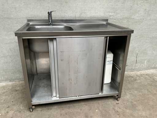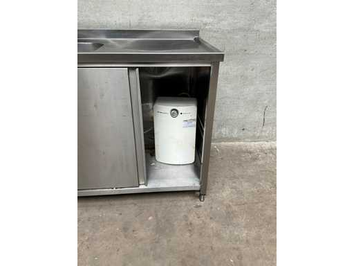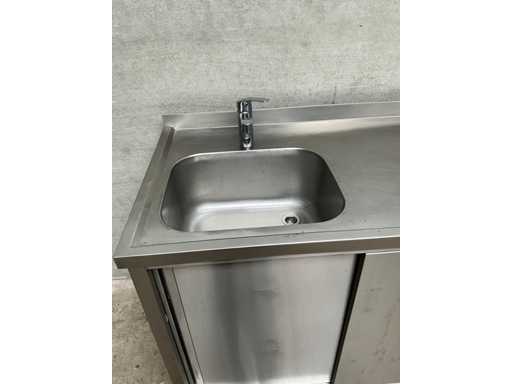 Edelstahlspüle, 1 Spülbecken 40x50x22 cm, Mischwasserhahn, erhöhte Kante, 2 Schiebetüren, Itho Daalderop-Kessel