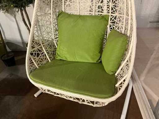 Ausgestattet mit Metallrahmen und geflochtenem PVC-Sitz mit Polster