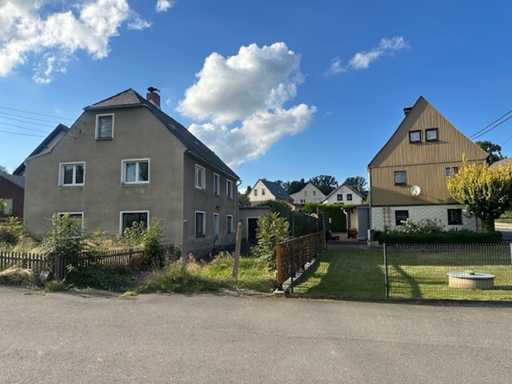 Auf einem großzügigen Grundstück von 830 m² im idyllischen Pfaffroda steht dieses Einfamilienhaus mit Garage und kleiner Scheune.