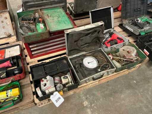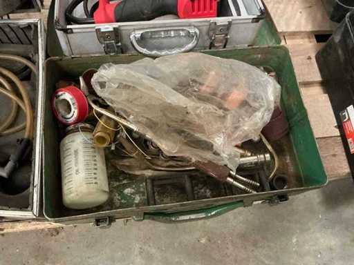 1x elektrischer Bohrer, 1x Niko-Heißluftpistole, 1x Aufbewahrungsschrank, Schneidbrennerteile und Messgeräte.