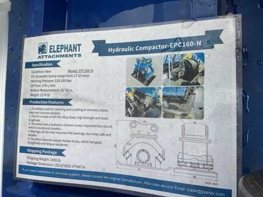 Bereitgestellte Aufprallkraft: ≈ 10 Tonnen; Hydraulikdruck: ≈ 200 bar; Hydraulischer Ölfluss: ≈ 160 L/min; Geeignet für: 17–23 Tonnen schwere Bagger; Material: Q345 Manganstahl (verschleiß- und korrosionsbeständig); Stifte: 42CrMo Legierungsstahllager: Schwere Industrielager; Stoßdämpfer: schwere Gummidämpfer zur Vibrationsdämmung; Eigengewicht: 986 kg; Grundplatte (Verdichtungsplatte): 1320 × 890 mm