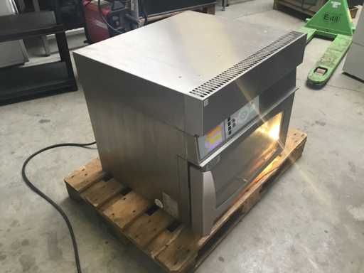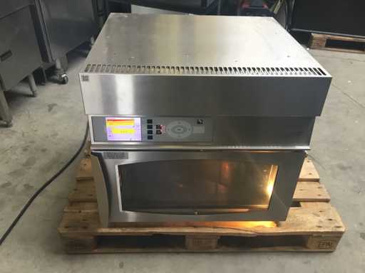 Eloma-Umluftofen inklusive Kondensationshaube, geeignet für 3 Backbleche von 440x350mm. Ausgestattet mit wichtigen Merkmalen wie Doppelverglasung, Innenbeleuchtung und einer rechts geschlagenen Tür für einfachen Zugang.