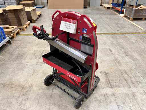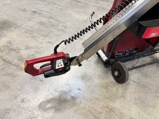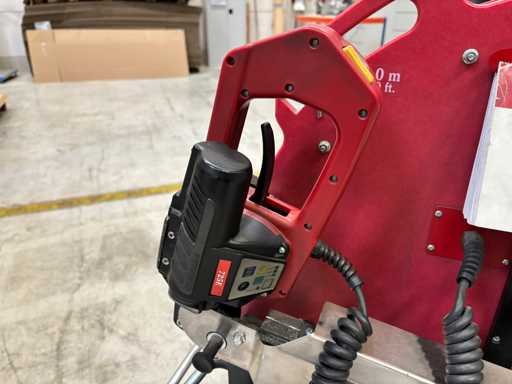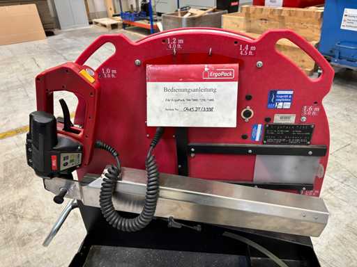 Maschinen-Nr. 0415DT/3398, halbautomatisches Palettenumreifungssystem mit Spanngerät, Spannkraft ca. 400 - 2500 N (Der Artikel ist im Zustand wie vorhanden und ungeprüft. Der Artikel wird ab Fundament und ohne Inhalt /Material verkauft! Für die Demontage und Verladung des Artikels sind keine Paletten vorhanden, weiteres Verpackungsmittel vor Ort und der Käufer muss bei Bedarf auf eigene Kosten einen Stapler, Panzerrollen, Maschinenheber usw. mieten!)
