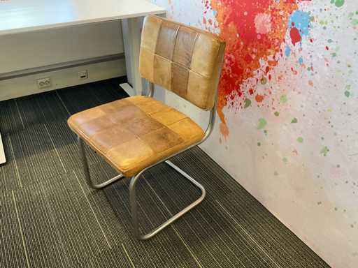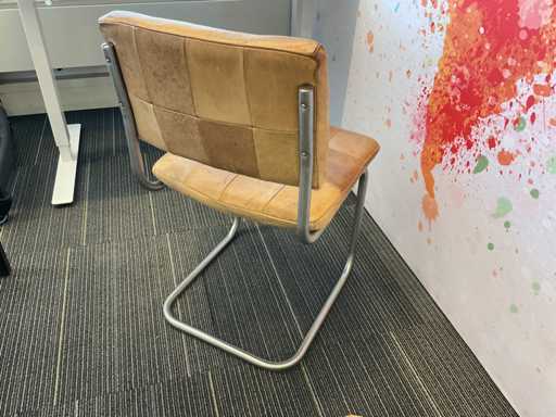 Ausgestattet mit Kunstledersitz, Rückenlehne und Schlittenfuß