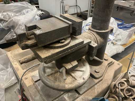 Komplett mit Metallsockel mit den Maßen 102 x 51 x 72 cm, komplett mit einigen Schweißelektroden.