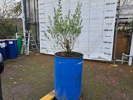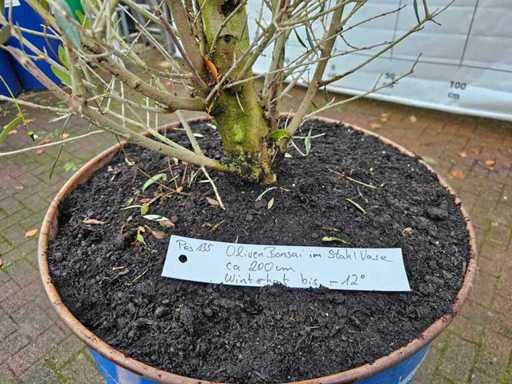 Exklusiver Oliven Bonsai (200 cm) in blauer Stahlvase - Winterhart