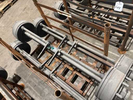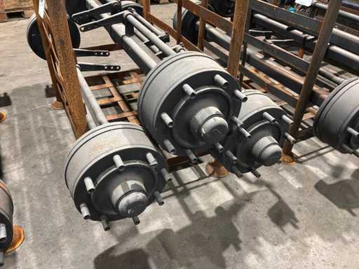 Gesamtbreite 1 Achse 1800 mm, 1 Satz zu je 3, Bremstrommelbreite 120 mm, 8 Schrauben pro Pitch ca. 270 mm, Abstand zwischen den Bremstrommeln 1320 mm