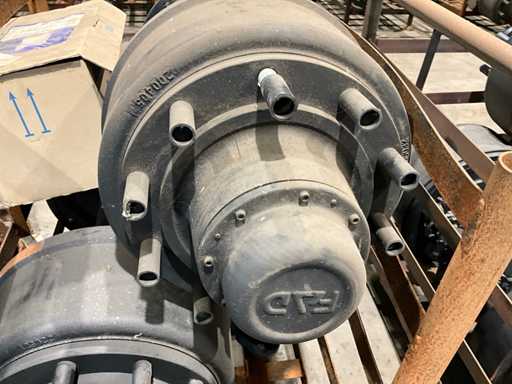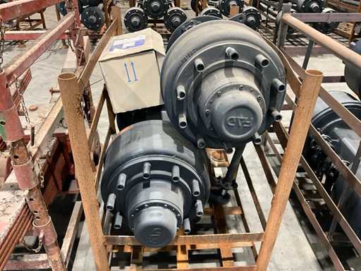 unvollständig, Gesamtbreite 1 Achse 1200 mm, 1 Satz zu je 2 für den Slurrytank verwendet, Gesamtbreite der Bremstrommel 200 mm, 10 Bolzen pro Pitch ca. 340 mm