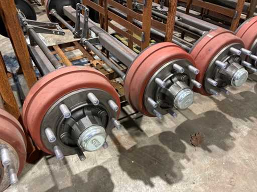Gesamtbreite 1 Achse 2000 mm, 1 Satz zu je 2, Bremstrommelbreite 120 mm, 8 Schrauben pro Steigung ca. 270 mm, Abstand zwischen den Trommeln 1400 mm