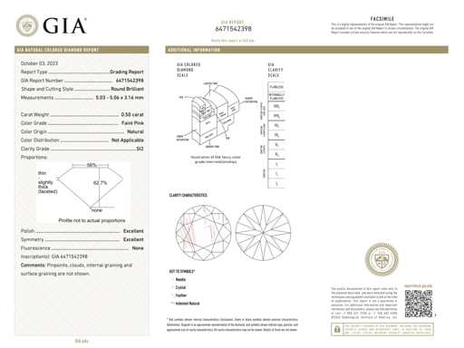 Diamant Diamant: Natürlich; Menge: 1 Stück; Schnitt: Brillantschnitt; Gewicht (Karat): 0,50 Karat; Farbe: Schwaches Rosa; Reinheit: SI2; Zertifikat: GIA; Zertifikatsnummer: 6471542398; Zustand: Neu; Verpackung: Gem Box; Erklärung: Die Qualität wurde aus dem Bericht übernommen, der zum Artikel gehört. Die Bewertung ist eine Bewertung eines zertifizierten Diamanthändlers, basierend auf Verbraucherpreisen; Verbraucherpreis: 8.000 €