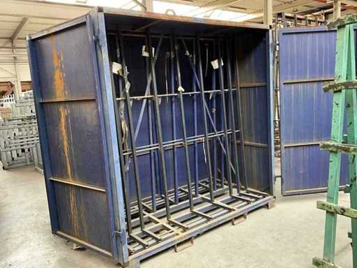 Ausgestattet mit Glasviadukt 2100x1000x2000 mm, 2 Seitentüren, Gabelstaplerlöffelschlitzen, Liftauge