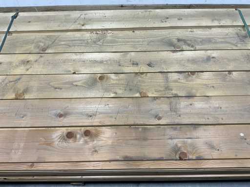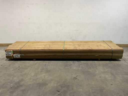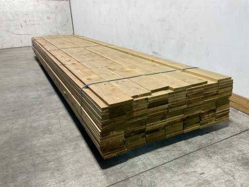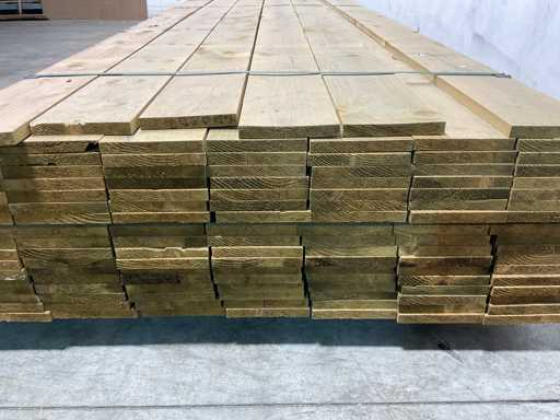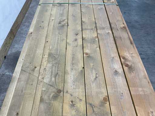 Fichtenimprägnierte Hobelbretter mit einer Größe von 390 x 15 x 2,2 Zentimetern.