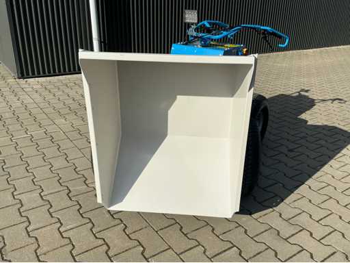 Elektrisch betrieben, selbstfahrend, ausgestattet mit hydraulischer Kippfunktion, Rasenreifen, LED-Arbeitsscheinwerfern, Digitalanzeige, Fahrerplattform, Autonomie 8-10 Arbeitsstunden, unbenutzt in der Kiste