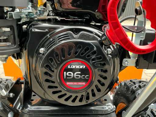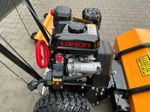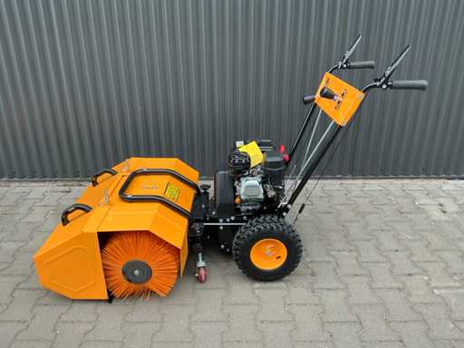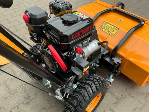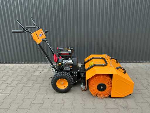 Selbstfahrende Kehrmaschine, ausgestattet mit 196 ccm Loncin 4-Takt-Benzinmotor, elektrisch gestartet. Walzenbürste in drei verschiedenen Positionen verstellbar (15° nach links, 0° und 15° nach rechts), 5 Vorwärts- und 2 Rückwärtsgänge
