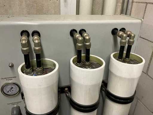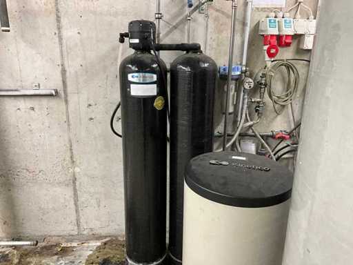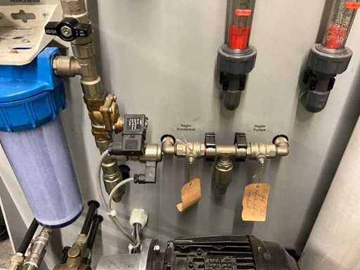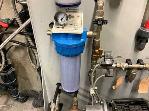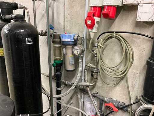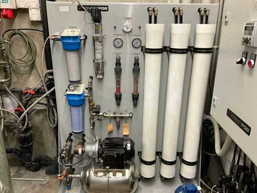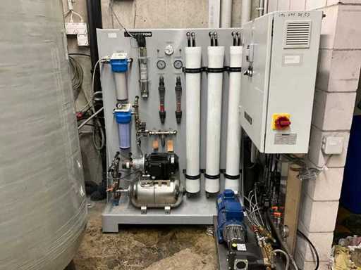 mit Hochdruckpumpe; Druckbehälter; mehrstufige Filter /RO-Module; Steuerschrank von Siemens; Wasserenthärter Kinetico (2 Säulen / Salzbehälter); grosser Druck- / Vorratstank;