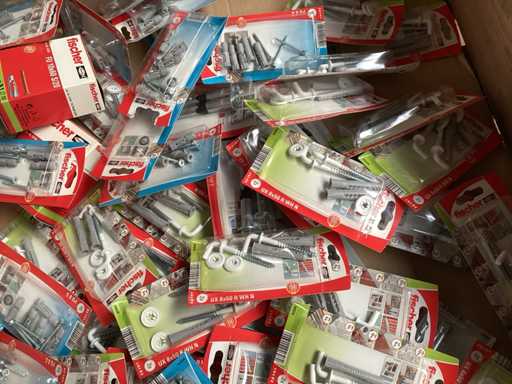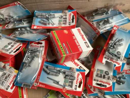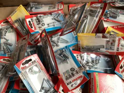 Verschiedene Befestigungsmaterialien in Blisterverpackungen. Dübel, Dübel, Klemmen