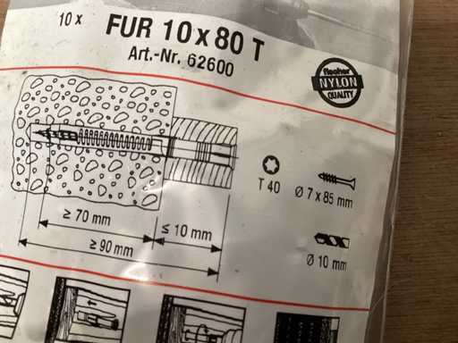 Nylon-Schlagdübel 10 x 80 mm, Schraube 7x85, Torx40, Packung à 10 Stück