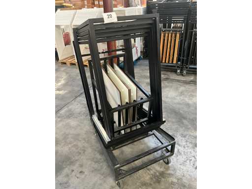 Komplett mit 4x Holzplatte, im mobilen Wagen mit den Maßen: 68x110x130cm