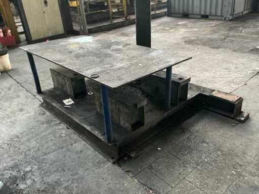 ausgestattet mit Abus elektrischem Kettenhebel, montiert auf Stahlchassis (275x170 cm) mit Stahlarbeitstisch (100x200 cm)