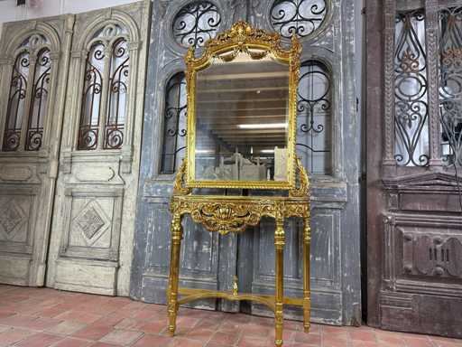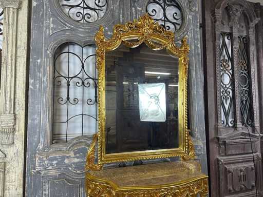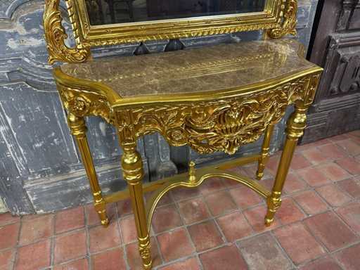 aus Holz; ausgestattet mit Spiegel; mit Marmordeckel