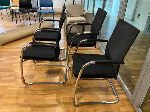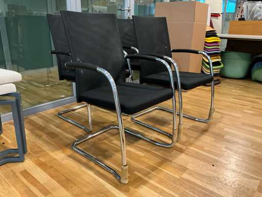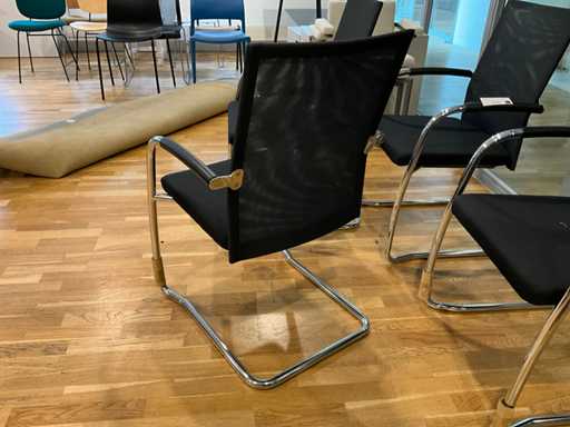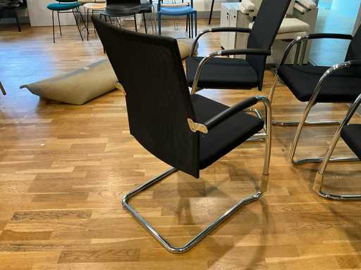 Sitzhöhe 46cm. Schwarze Polsterung - Netzgewebte Rückseite; Dieses Grundstück befindet sich im ersten Stock, der über eine feste Treppe erreichbar ist. Es gibt keinen Aufzug