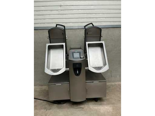 Vario-Kochzentrum, 2 kippbare Bratbleche mit einem Fassungsvermögen von 14 Litern, auf der Basis mit ausziehbarem Bleche, geeignet zum Kochen, Backen, Braten, Schmoren und Braten