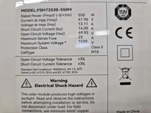 FutureSolar Monofacial 550W Photovoltaik Module NEU & OVP 3 Paletten