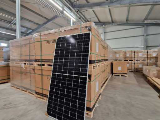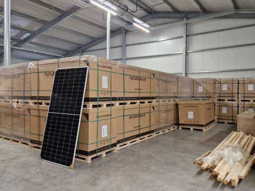 Sie bieten auf eine Palette mit 155 neuen, originalverpackten Photovoltaik-Modulen mit je 550 W Leistung – insgesamt 85,25 kWp. Es handelt sich um moderne M10 Half-Cell-Module mit Multi-Busbar-Technologie, hoher Effizienz von 21,33 % und positiver Leistungstoleranz. Die Module sind TÜV-zertifiziert und SGS-geprüft und verfügen über einen besonders robusten, verstärkten 35 mm Stahlrahmen, der für zusätzliche Stabilität sorgt – ideal für anspruchsvolle Einsatzbedingungen. Ausgestattet mit MC4-kompatiblen Steckern und 100 cm Anschlusskabel sind die Module sofort einsatzbereit. Diese Hochleistungsmodule bieten maximale Energieausbeute auf begrenztem Raum, senken Montageaufwand und Materialeinsatz und überzeugen durch ein starkes Preis-Leistungs-Verhältnis. Eine Palette wiegt 907 kg und hat die Maße 2315x1130x1258 mm. Die Palette enthält ausschließlich fabrikneue, unbenutzte Module in Originalverpackung. Der Listenpreis für die gesamte Palette beträgt 3.800 €.