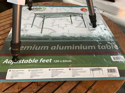 Bestehend aus 1x runder Holztisch mit einem Durchmesser von 110 cm, +1x Bo-Camp Klapptisch mit 120x60 cm, +1x Holztisch mit weißer Kunststoffoberfläche, Maße 190x95 cm.