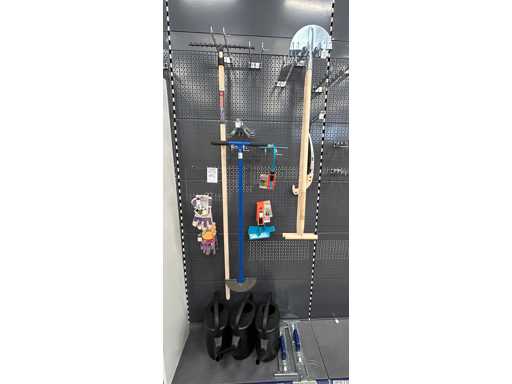 Bestehend aus Gießkannen, Hacken, Rechen und Stäbchenhaltern