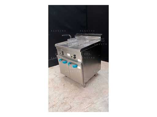 Gasfritteuse mit zwei Tanks und kalter Zone, Edelstahlkonstruktion.