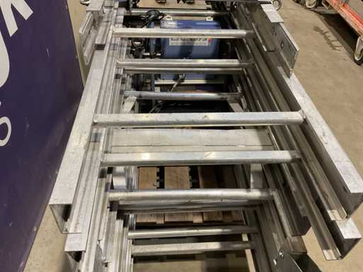 5x 2 Meter Stück; Endstück; 2x Sockel von 2 Metern; Fernbedienung; GEDA Motor 250 Comfort; letzter Abschlag; Eckstück; 1 x 1 Meter Stück; GEDA Transportbox