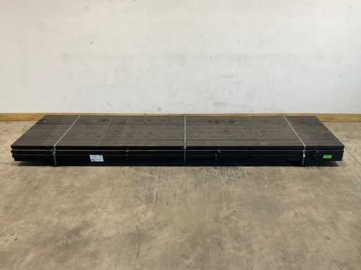 Fichtenhobelbalken, schwarz imprägniert, mit einer Größe von je 400 x 16 x 4,5 cm.