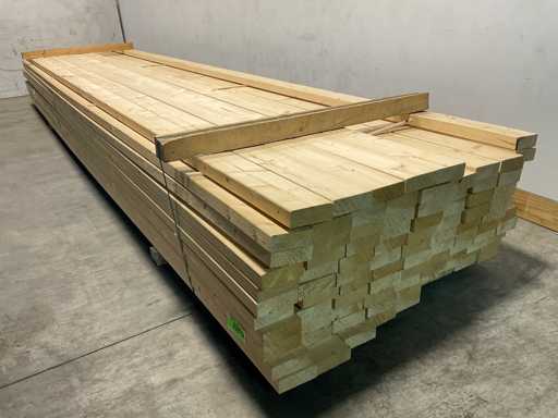 Gehobelte Fichtenbalken mit einer Abmessung von 540 x 12 x 4,4 cm.