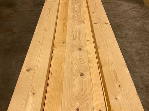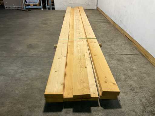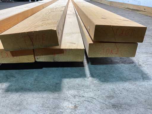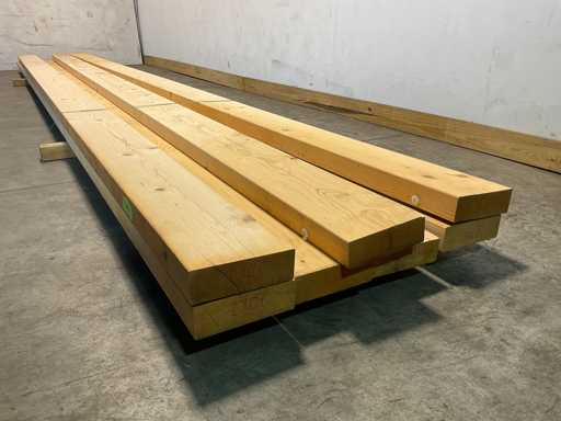 Gehobelte Fichtenbalken mit einer Größe von je 660 x 22 x 7 cm.