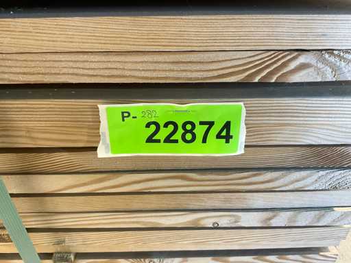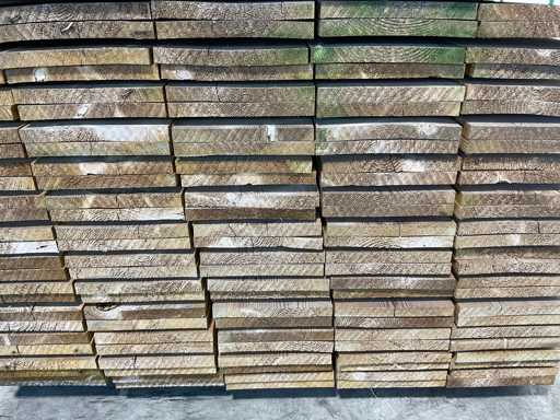 Gehobelte Kieferndielen mit einer Größe von 180 x 20 x 2 cm, mit geraden Ecken und imprägniertem Grün.