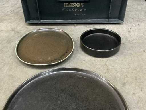 bestehend aus: (113x) flache Platte; Ø 27 cm; (46x) Dessertteller; Ø 21 cm; (24x) Sideboard; Ø 13 cm; inkl. (10x) stapelbare Kiste