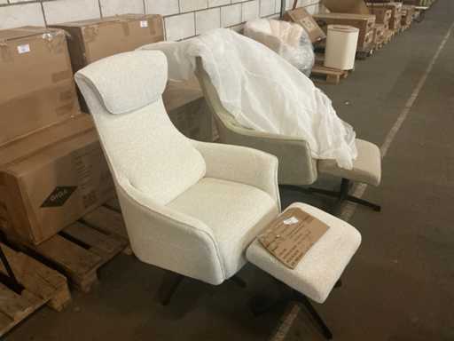Giga Furniture Relaxsessel Katie - beiger Stoff - mit Fußhocker