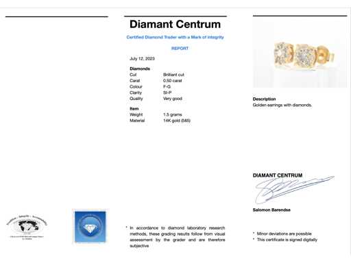 Diamanten: Natur; Schnitt: Brillantschnitt; Gewicht (Karat): 0,50 Karat; Farbe: F-G; Reinheit: SI-P; Schnittqualität: Sehr schön; Juwel: Ohrringe; Gewicht: 1,5 Unzen; Material: 14 Karat (585); Zustand: Neu; Verpackung: Luxus-Schmuckschatulle; Erklärung: Die Qualität wurde aus dem Bericht übernommen, der zum Artikel gehört. Die Bewertung ist eine Bewertung eines zertifizierten Diamanthändlers, basierend auf Verbraucherpreisen; Verbraucherpreis: 1.960 €