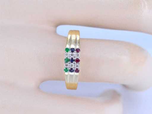 Goldring mit Diamanten und mehrfarbigen Edelsteinen