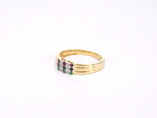 Goldring mit Diamant und mehrfarbigen