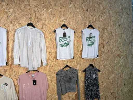 Verschiedene Herren- und Damenhemden und -hemden in unterschiedlichen Modellen, Farben und Größen.