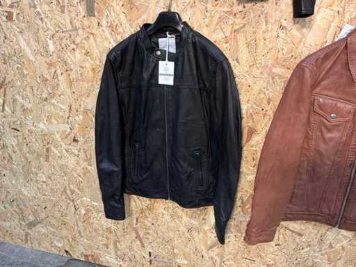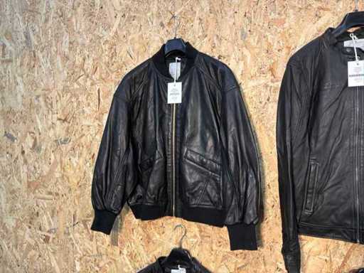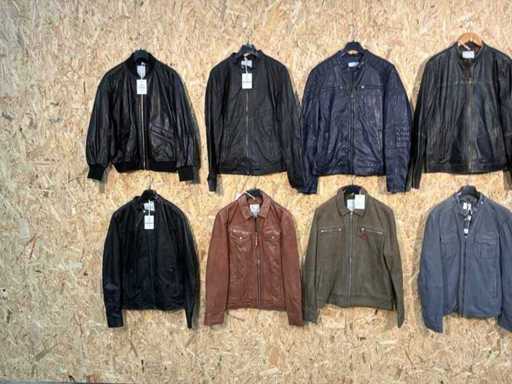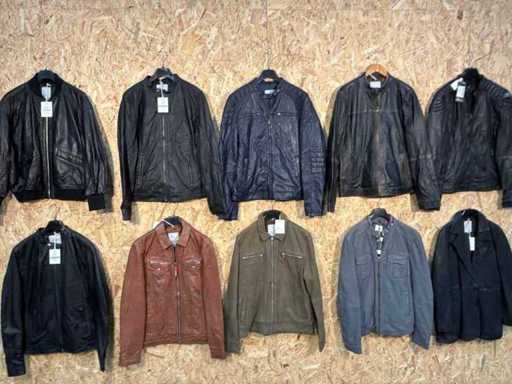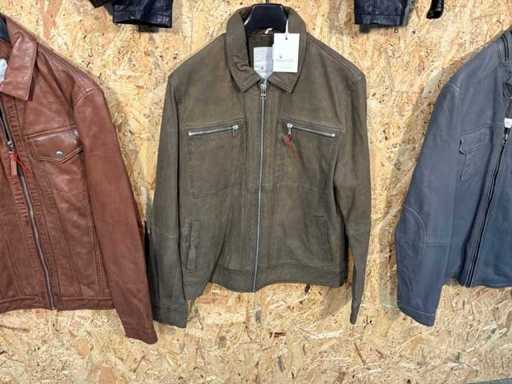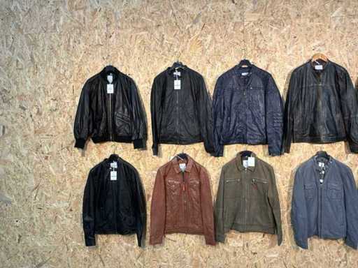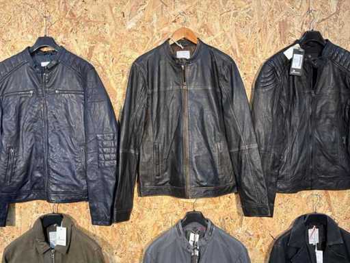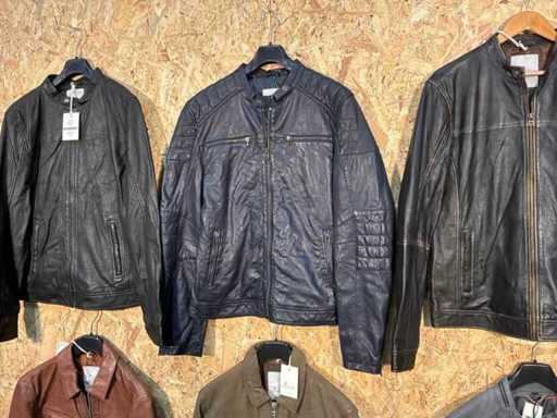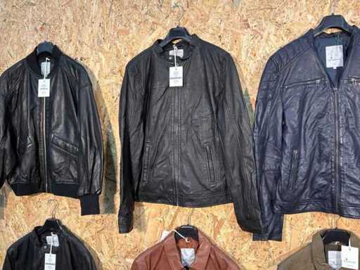 Verschiedene Herrenlederjacken in unterschiedlichen Modellen, Farben und Größen.