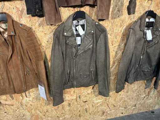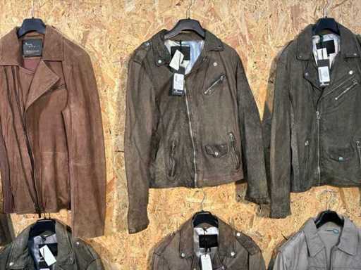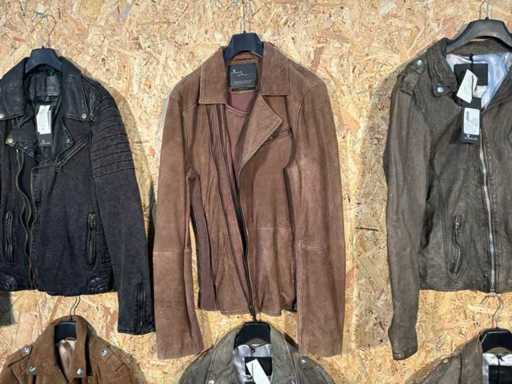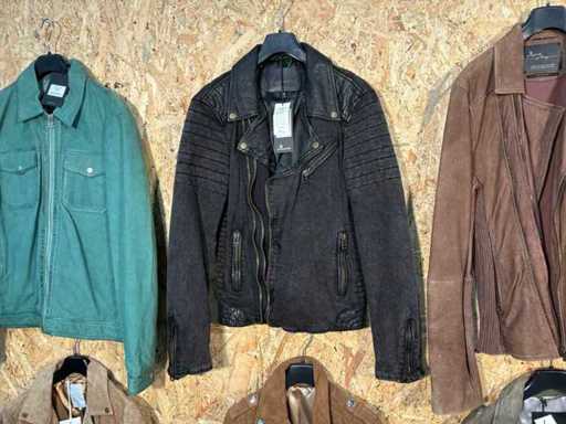 Verschiedene Herren- und Damenlederjacken in unterschiedlichen Modellen, Farben und Größen.