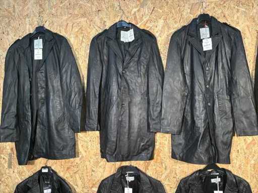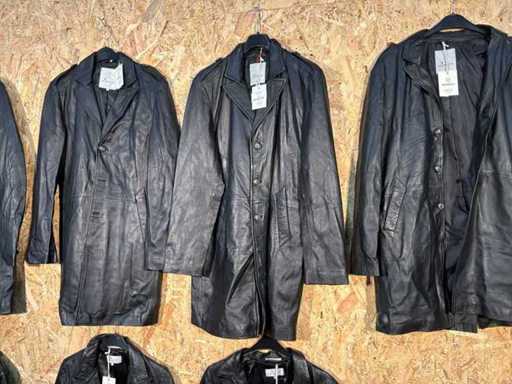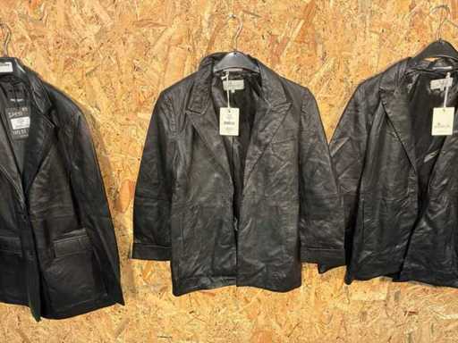 Verschiedene Ledermäntel und Blazer für Damen und Herren in unterschiedlichen Modellen, Farben und Größen.