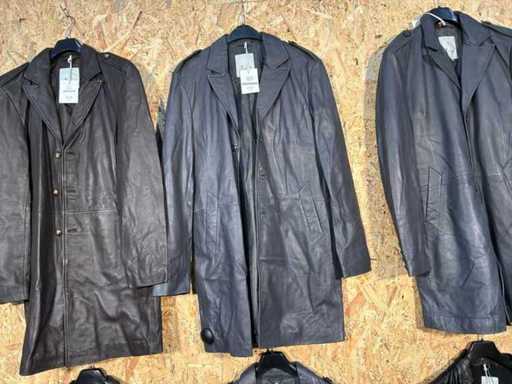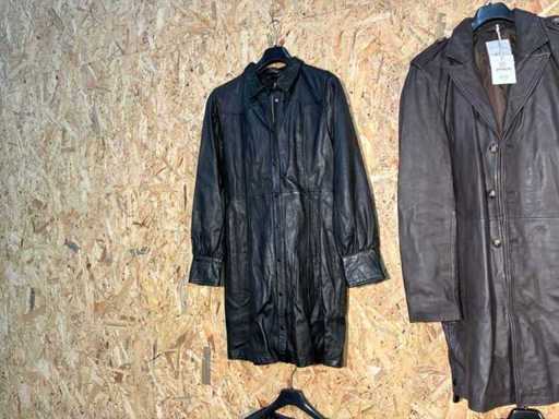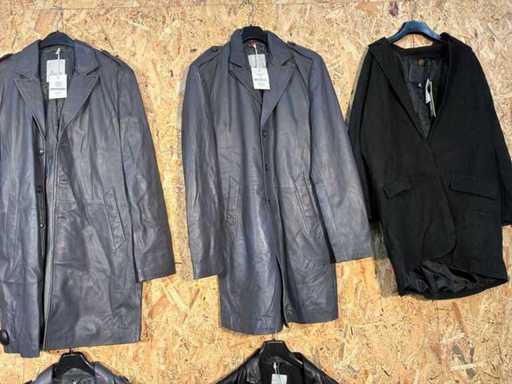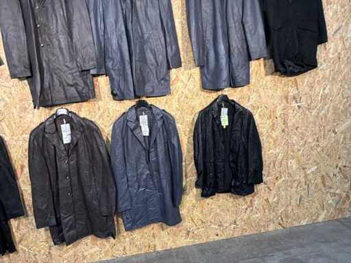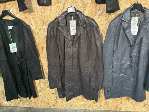 Verschiedene Ledermäntel und Blazer für Damen und Herren in unterschiedlichen Modellen, Farben und Größen. Kleiderbügel inklusive. Wenn die Artikel Sicherheitsetiketten tragen, werden sie vor dem Liefertag entfernt.