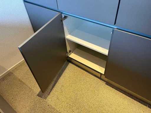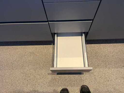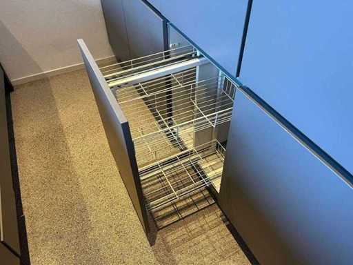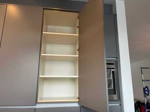 Maße hohe Schränke LxWxH ca. 303x60x235 cm; Abmessungen Insel lxw ca. 290x90,5 cm;