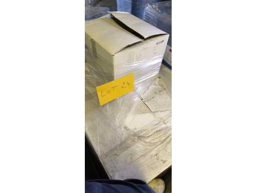 Palette bestehend aus 19 Kartons weißer H. Essers & Zonen NV Thermoetiketten, 100 × 200 mm Format .